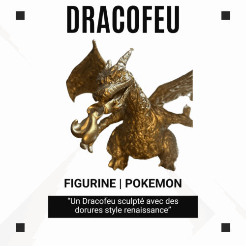Dracofeu Renaissance – Sculpture 3D dorée – Style ornemental – 25 cm