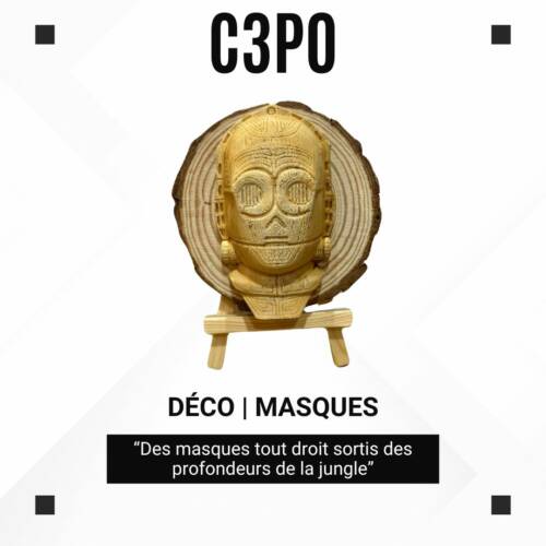 C3PO – Sculpture en style bois sur rondin naturel – Collection Tiki