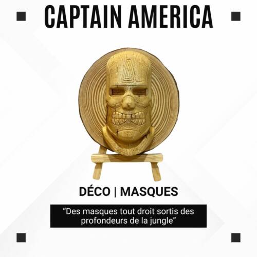 Captain America – Sculpture en style bois sur rondin naturel – Collection Tiki