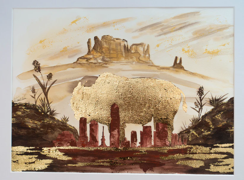 Plongez-vous dans l’ouest avec ce bison en feuilles d’or.