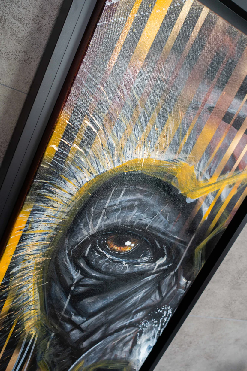 Chaque coup de pinceau de cette œuvre d’art est empreint de passion, transmettant une émotion profonde que cet animal emblématique souhaite partager. Je me suis spécialement attaché à capturer ce regard, car je crois en la puissance des histoires qu’un regard peut raconter. Il peut évoquer une sagesse ancestrale, une force tranquille ou une vulnérabilité touchante. Avec ce tableau, vous invitez chez vous une présence fascinante, chargée d’histoires prêtes à être découvertes.