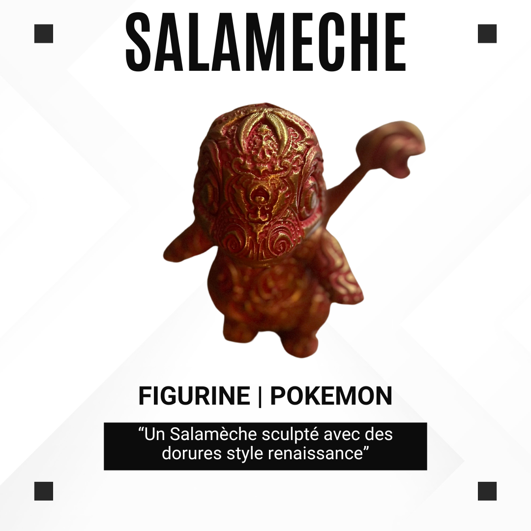 Plonge dans l’univers de Pokémon avec cette sculpture 3D de Salamèche, réimaginée dans un style Renaissance. Chaque détail sculptural de son corps et de sa queue a été finement travaillé pour rappeler l’élégance des œuvres classiques. La finition rouge avec des dorures met en valeur son aspect flamboyant et en fait une pièce de collection unique.